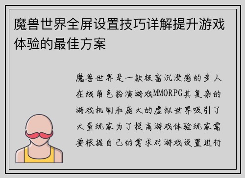 魔兽世界全屏设置技巧详解提升游戏体验的最佳方案