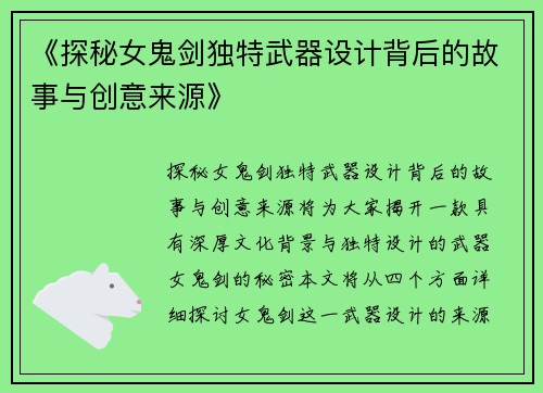 《探秘女鬼剑独特武器设计背后的故事与创意来源》