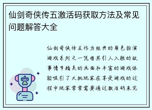 仙剑奇侠传五激活码获取方法及常见问题解答大全